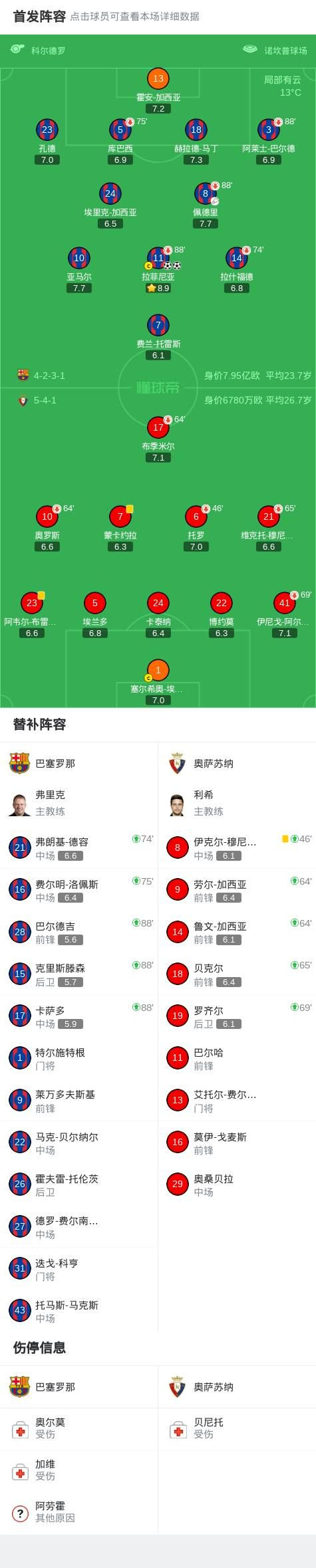 第70分钟,佩德里送出短传,拉菲尼亚远射变线破门!巴萨1-0奥萨苏纳